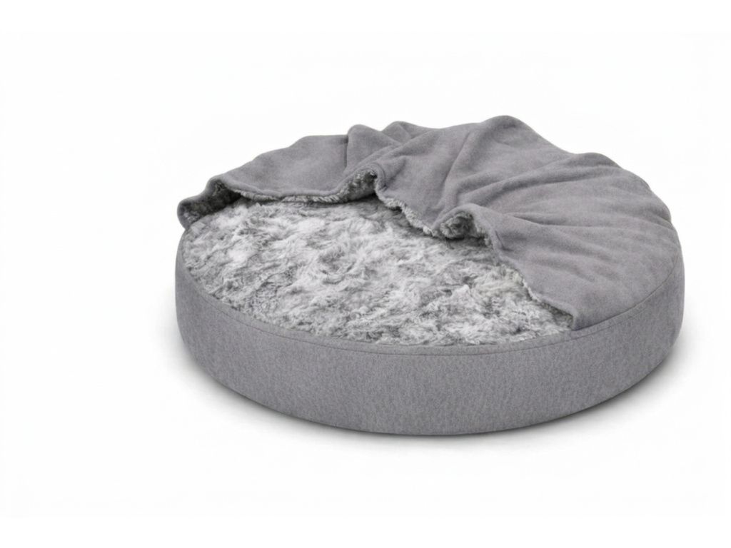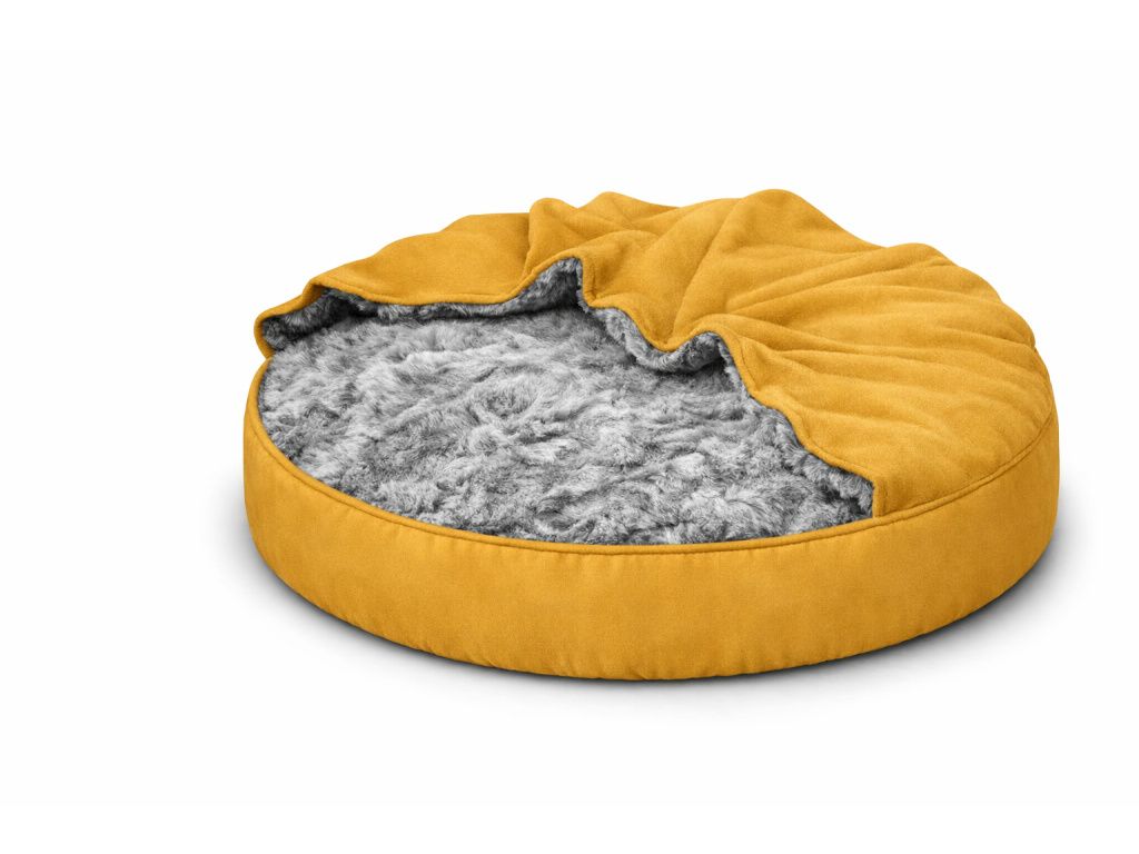 - Uvnitř kulatého pelíšku se nachází vak na zip, naplněný drtí z paměťové pěny, díky čemuž pelíšek stále drží svůj tvar.