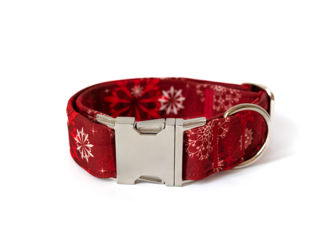 - Softshellový obojek vločky na červené nabízíme v několika variantách šíře a typu zapínání. Do poznámky uveďte obvod krku Vašeho pejska. Obojek má také regulaci délky.