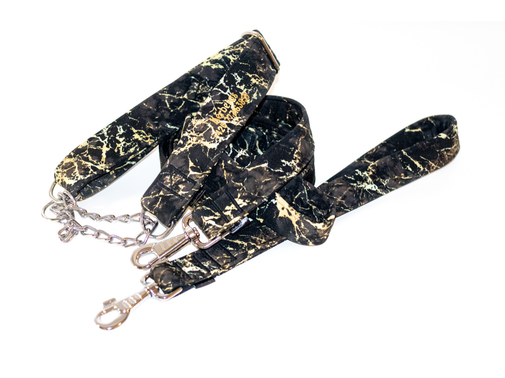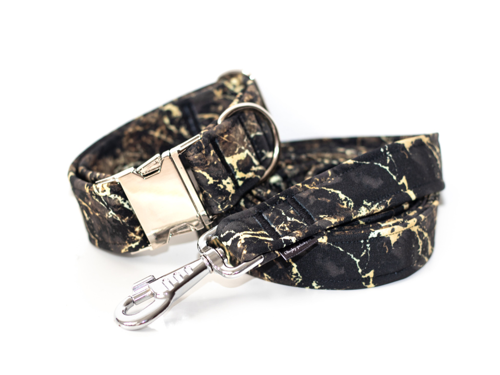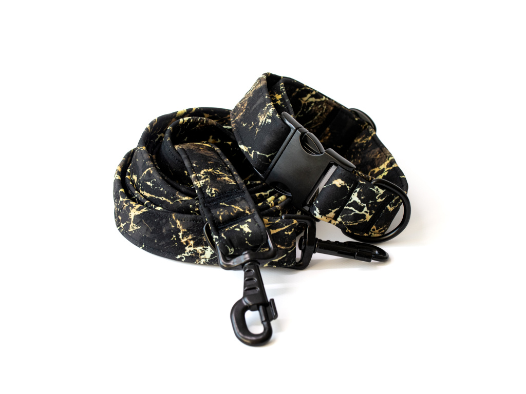 - Softshellový obojek zlatý mramor nabízíme v několika variantách šíře a typu zapínání. Do poznámky uveďte obvod krku Vašeho pejska. Obojek má také regulaci délky.